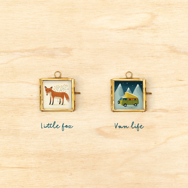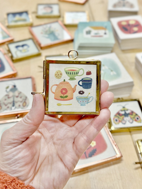 Miniprint in lijstje​ met deurtje, 5,5 x 5,5 cm. Deze lijstjes zijn ook heel leuk als kerstboomhangers.